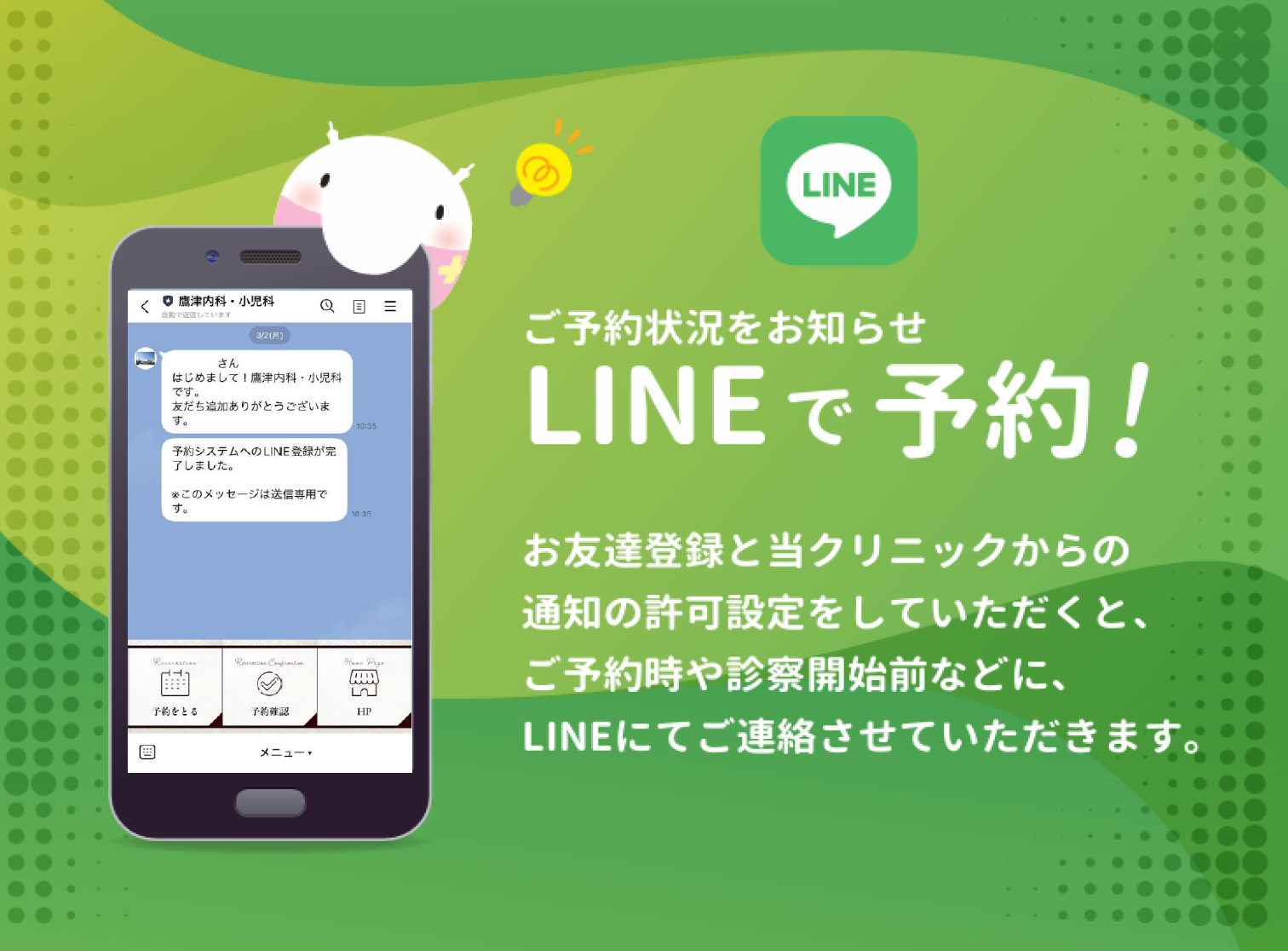 ご予約時や診察開始前などに、LINEにてご連絡させていただきます。